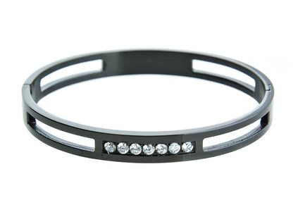 Pevný náramek s krystaly se zapínáním z chirurgické oceli v černé barvě, průměr: 68 mm, šířka: 8,3 mm