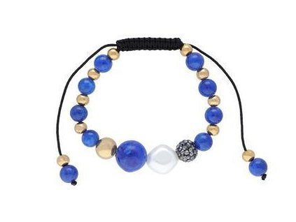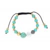 Náramek na šňůrce s tyrkysovými a zlatými korálky. Velikost náramku lze nastavit podle potřeby.