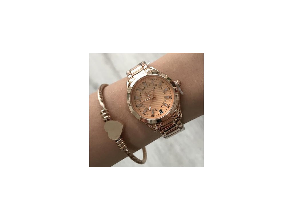 Náramek rose gold z oceli se srdíčkem L171