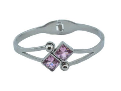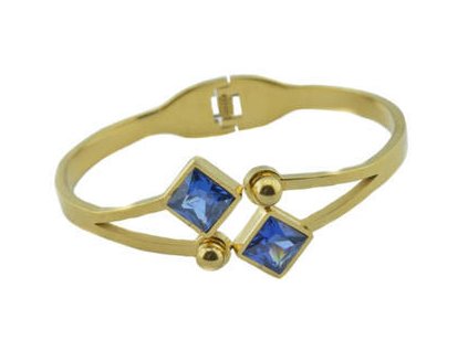 Pevný náramek otvírací z chirurgické oceli ve stříbrné barvě s modrými krystaly, průměr: 59 mm, šířka: 5 mm