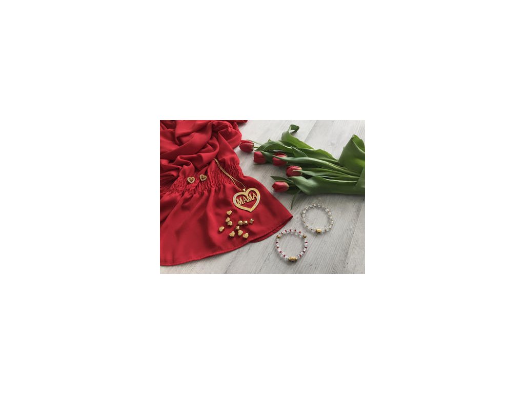 Náramek se srdíčkem s nápisem "MAMM / MUM" ze skleněných korálků a korálků z chirurgické oceli.