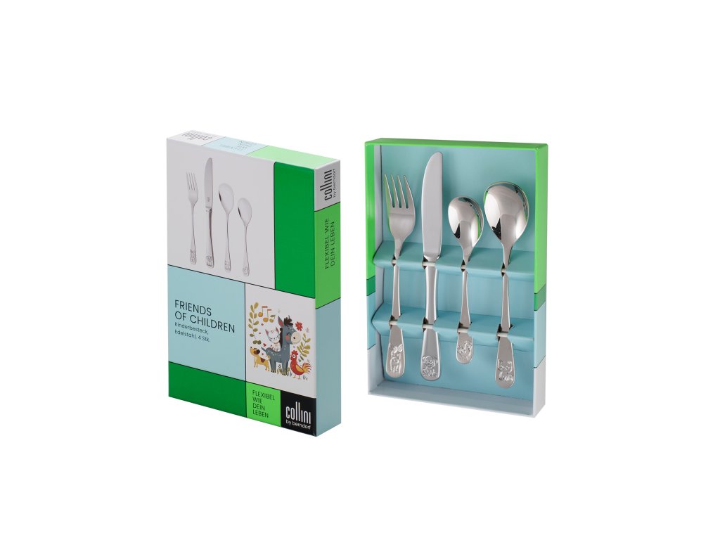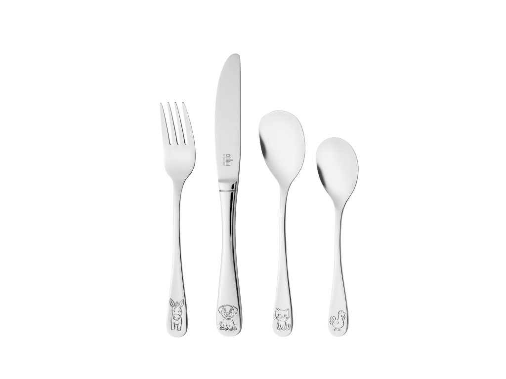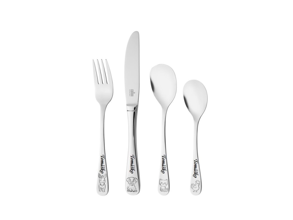 - Obsahuje: 1 x lžíce dětská (158mm), 1 x vidlička dětská (163mm), 1 x nůž dětský (182mm), 1 x lžička dětská (130mm).