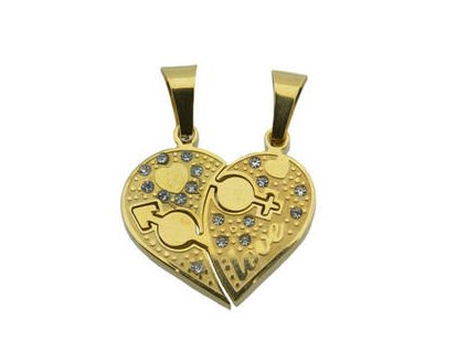 Přívěsek SRDCE chirurgicá ocel a růžový obsidian