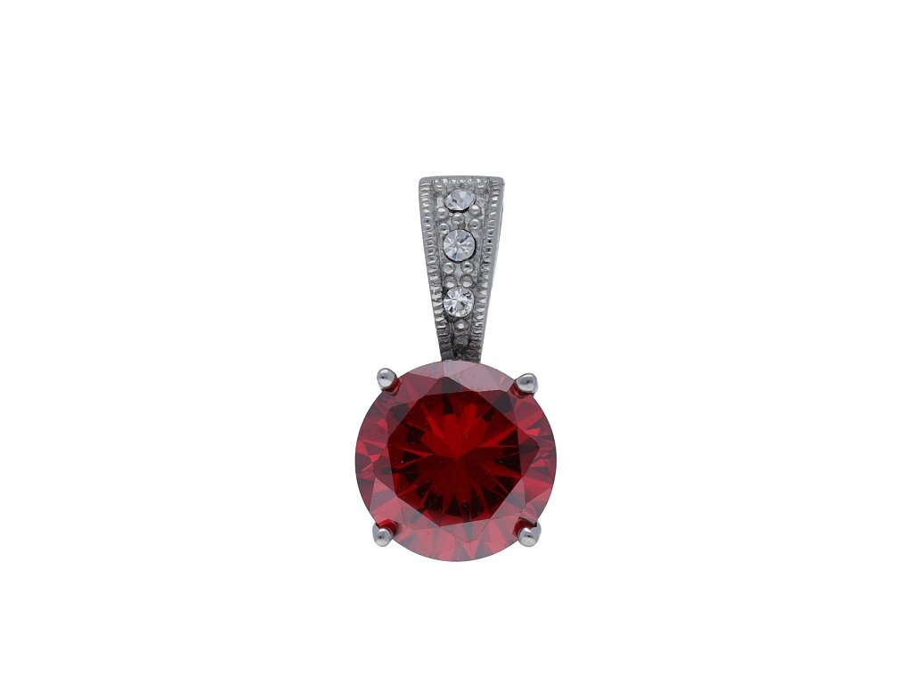 Přívěsek s červeným krystalem (22x11 mm) z chirurgické oceli ve stříbrné barvě