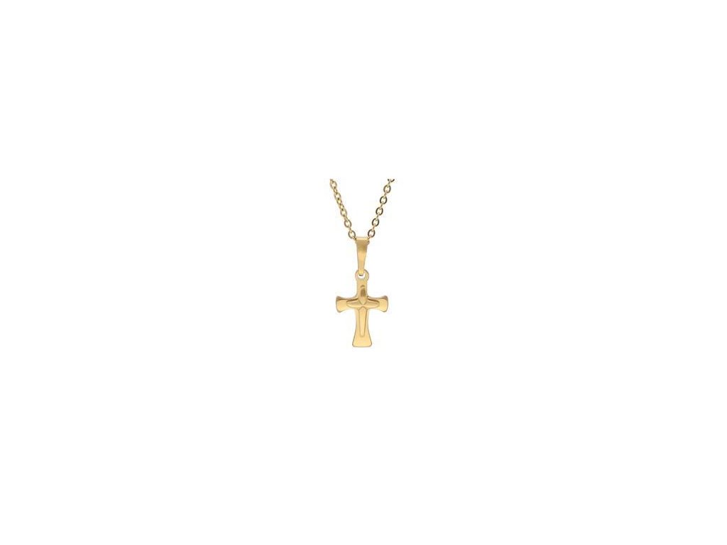 Řetízek (délka: 490 mm) s přívěskem křížku (21x14 mm) z chirurgické oceli ve zlaté barvě